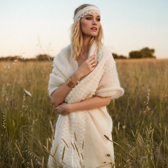 A light lace shawl or cape.This will not be intended to keep you warm but rather to accessorise your outfit. The lace shawl/cape is definitely very bohemian and will bring chic to your outfit.