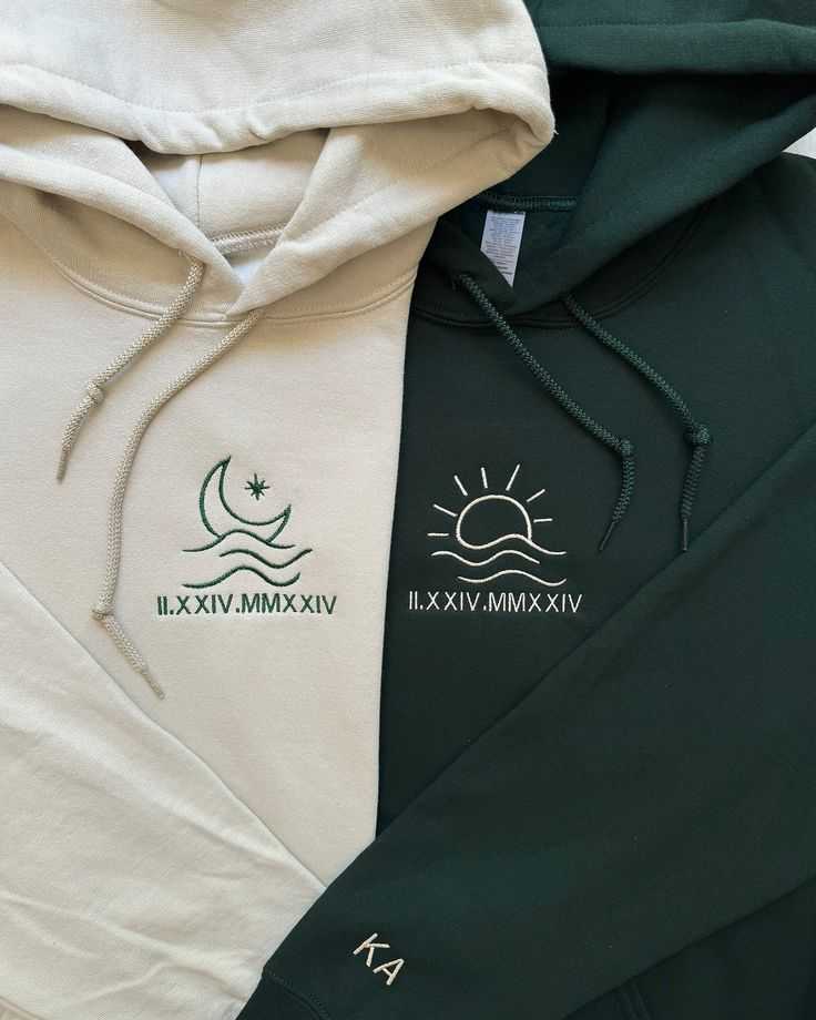 Create a sartorial wink for your couple! A bathrobe embroidered with "Monsieur" and "Madame", two sweatshirts with each other's initials on the heart, or matching T-shirts with a mirrored message... Whether for staying at home or discreetly displaying your bond, these embroidered duo pieces are a great way to celebrate your love and complicity.